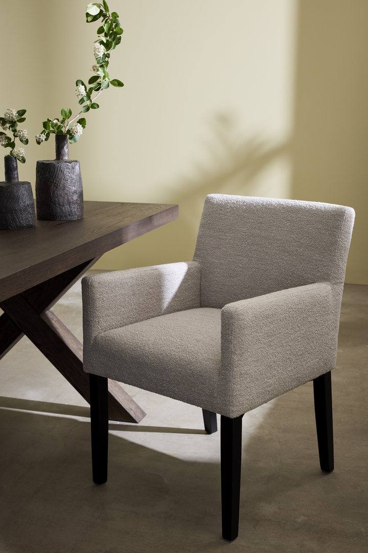Hem / Innemöbler / Stolar / Matstolar / JOEL Matstol m armstöd i beige bouclétyg