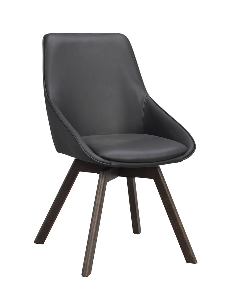 Hem / Innemöbler / Stolar / Matstolar / Alison stol svart läder/bruna ekben snurr