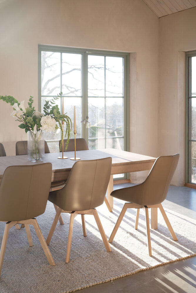 Hem / Innemöbler / Stolar / Matstolar / Alison stol beige läder/vitpigmenterade ekben snurr