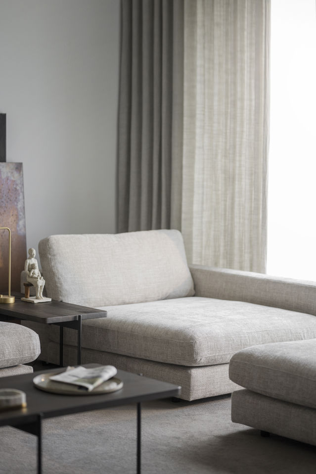 Duncan fåtölj/mittmodul i modern design och med generöst sittdjup ger vardagsrummet en inbjudande känsla, oavsett om den används som mittmodul i soffan Duncan eller fristående som en extra sittplats vid soffgruppen. Fåtöljen är här klädd i det vackra tyget Robin gråbeige (#109) och är mjukt, exklusivt och slitstarkt vilket passar dig som söker både komfort och kvalitet. Kollektionen Duncan består av flera olika moduler vilket ger dig möjligheten att själv anpassa soffgruppen efter dina önskemål. Det finns dessutom många olika tyger och färger att välja på. Varje modul är helklädd och kan därför användas antingen fristående eller monterade med andra moduler, perfekt om du vill möblera om eller flytta med dig soffgruppen till ett annat boende. Komplettera soffgruppen med en fotpall eller schäslong. Modulerna tillverkas i Europa och är FSC-certifierade vilket innebär att allt trä kommer från ett ansvarsfullt skogsbruk.