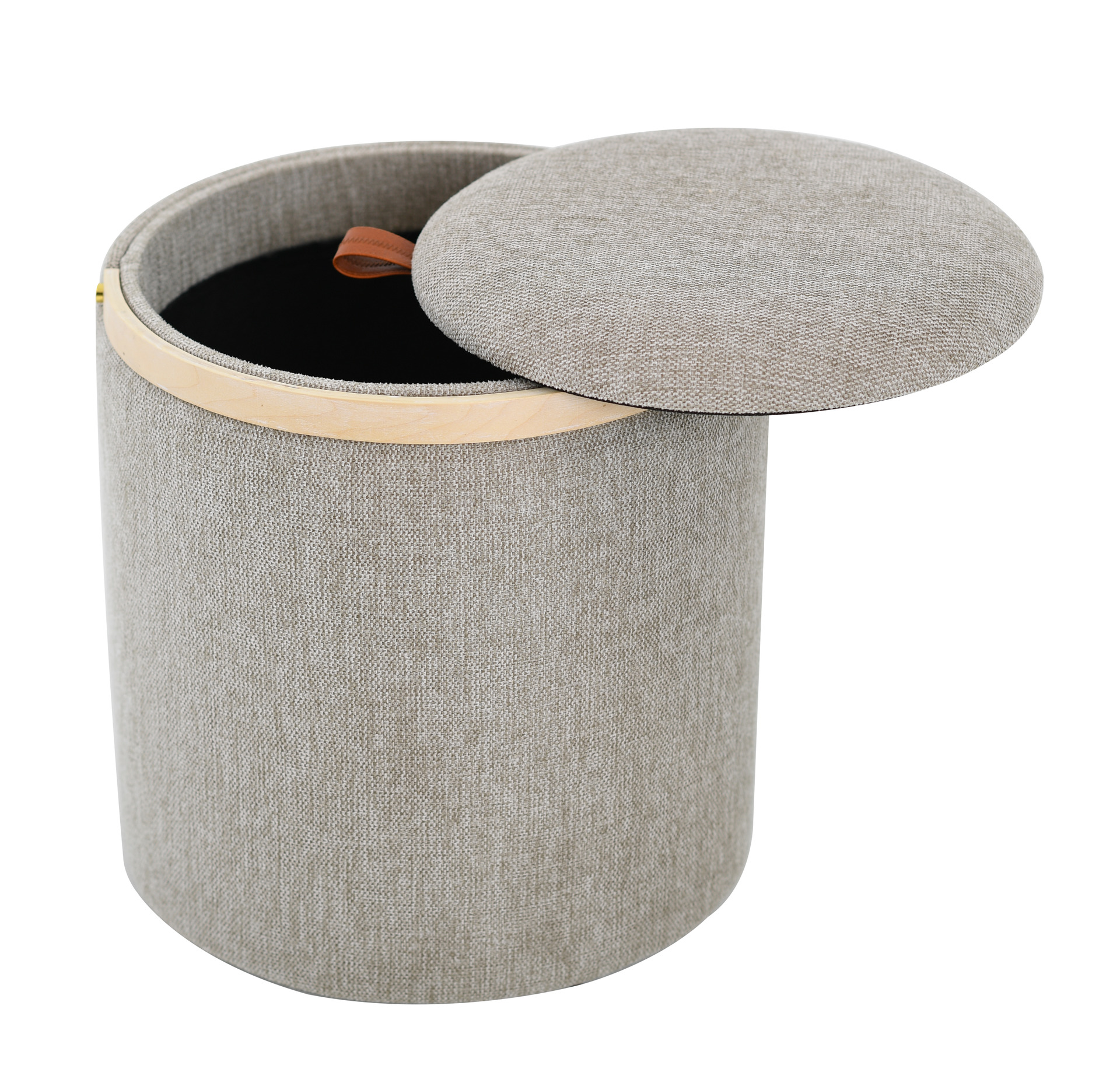Hem / LYKKE Puff grå/brun med trähandtag